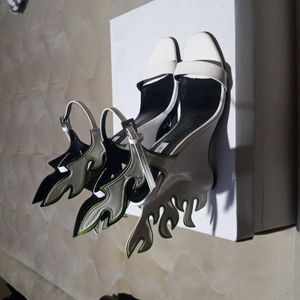 Wedge Heels. White with lime green trimming. Made by Cape Robin. Size 6.5 M.