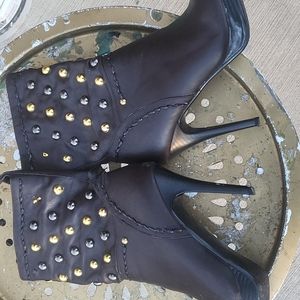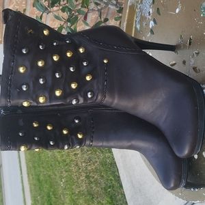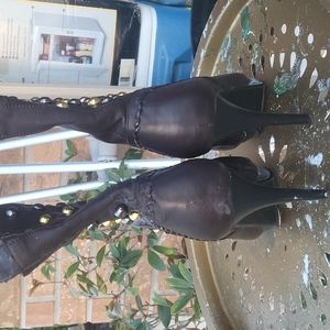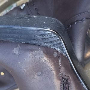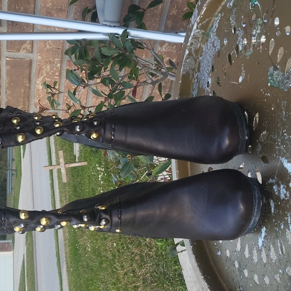 brown faux leather boots with gold buttons...little imperfections on the left side...picture taken to show