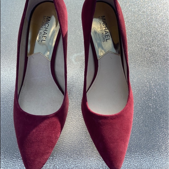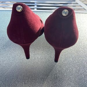 Beautiful burgundy 4 inch heel. Close toe with designer buttons on back of heels. Almost like new!