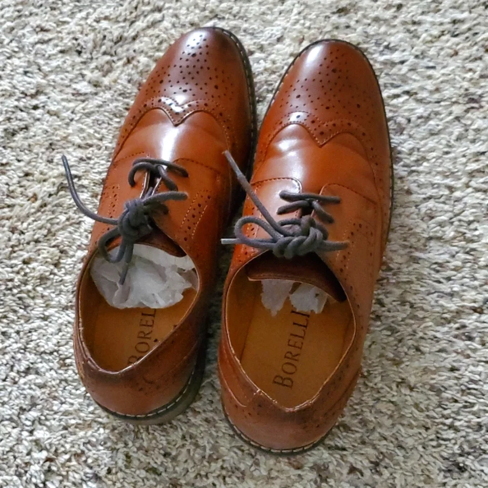 Boys dress up shoes. Right shoe has a little scuff at the front not noticeable.