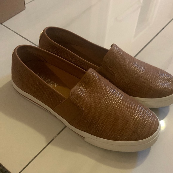 These lovely Ralph Lauren shoes worn by me one to two times. I am a true 6.5 and these for true to size. Great condition. No Box
