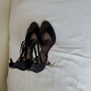 comfortable black leather Calvin Klein strappy in front and sipper in back with 3 inch only wear twice