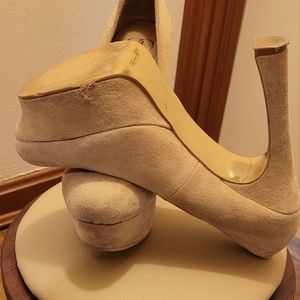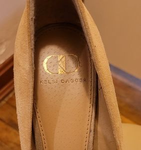 These beautiful tan suede pumps by Kelsi Dagger with so much height (51/2"), make your legs last forever. Gives a nice sturdy Stan e due to the 1 1/2" platform and 21/2" dance heel. looks great with your jeans or your best evening were.