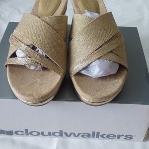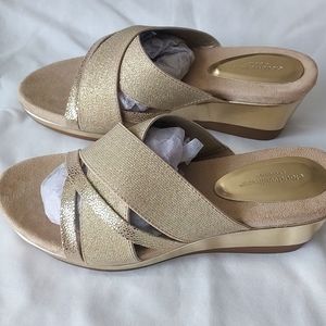 Cloudwalkers by Avenue Vilano Gold Sandal women's 11W slip on wedges. Brand new, never used.