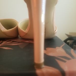 This beautiful 4in blush pink patent leather pump is a must for every girl's wardrobe! These pumps are in excellent condition as they have been kept in an acrylic box dust free. Price includes the box!