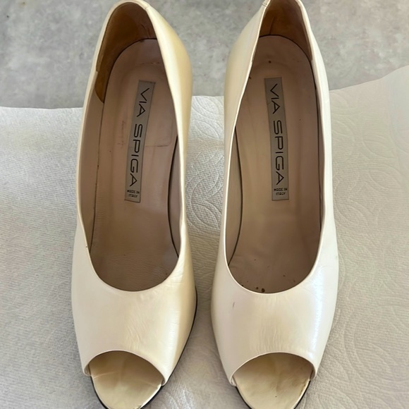 Italian Off white peep toe pump. 3” heel. Barely worn. All leather upper and sole. Very comfortable soft leather.