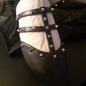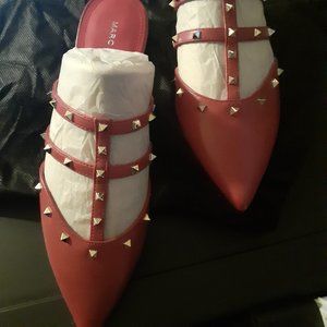 Never worn Black and or Red leather mule flats w/gold color spikes.