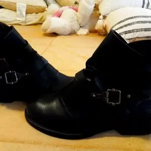 Black leather double buckle boots with silver accented buckles
