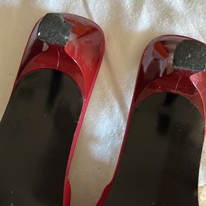 Parade shoes in red with bow decoration left shoe a bit worn see pic otherwise in good condition size 9