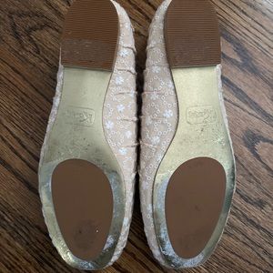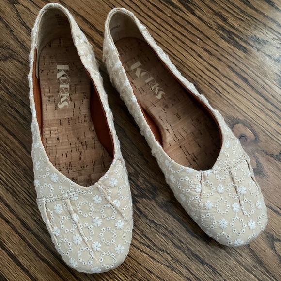 Flats, color cream, used once, run a bit big, made of cloth by Korks