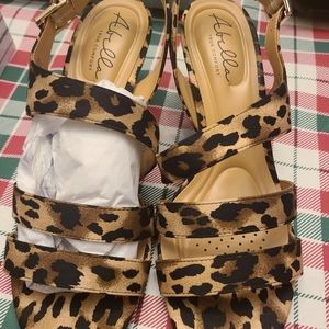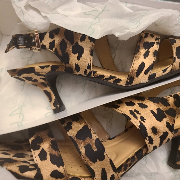 leopard print strappy heeled shoes, 3" heels