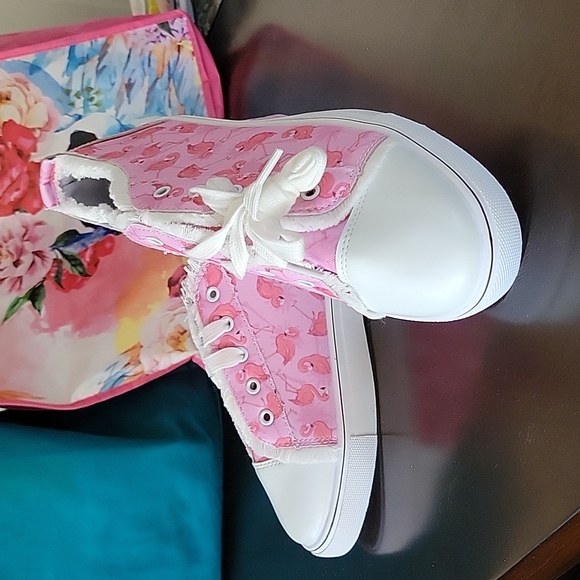 these were a gift, and they did not fit, so they are brand new! punk flamingos and palm trees. Lace up Tennyson.