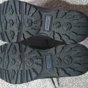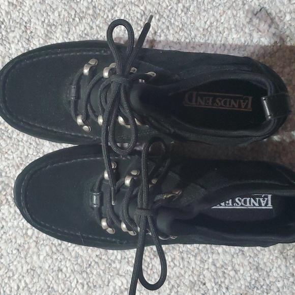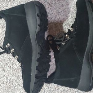 Black lace up low styled boots. Thick rubber soles, suede feel uppers. No tag, but never worn.