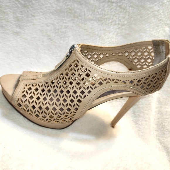 Get your Carlos Santana groove on with these leather taupe platform heels