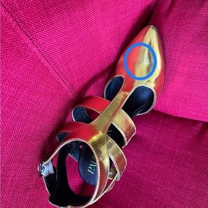 @ruth36798421, thank you. That is a great question; no rip, no tear, just a minor black scratch, a minor looking black line; but it is hardly noticeable. They are beautiful shoes. I hardly wore them.