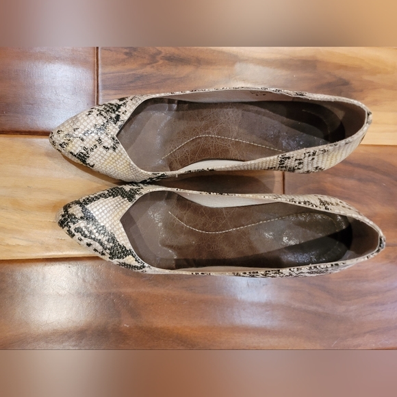 Size 8.5 like heal dress shoes, gently used, great condition, snake skin heels