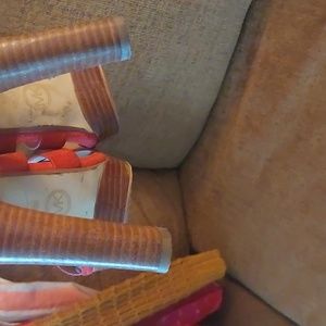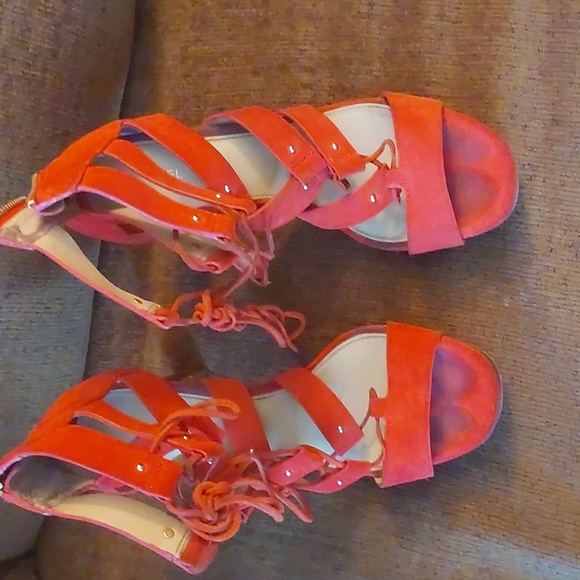 Michael Kors orange heels. Very comfortable. Zipper on right heel is slighty lifting. Size 10
