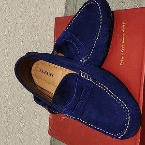 Royal blue suede driving loafers..
