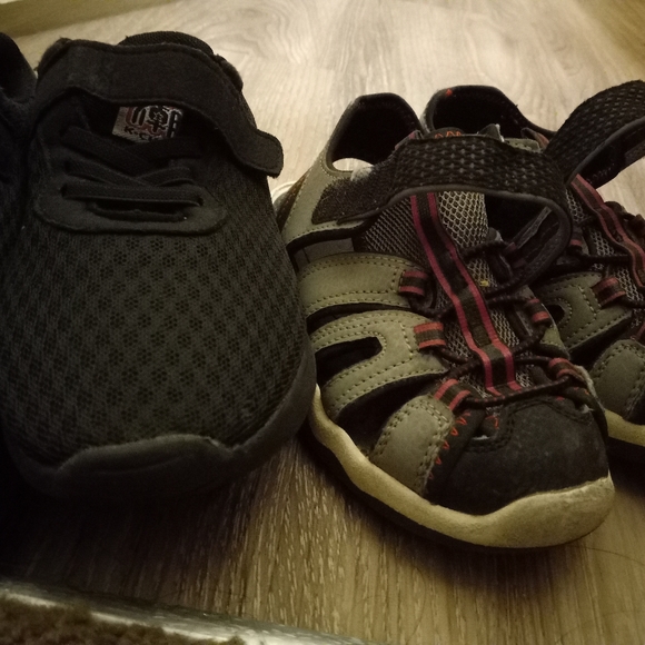 Boys shoes 1 pair size 12.5 skechers sandals and 1 pair black off brand running shoes