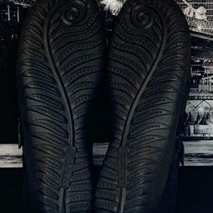 Naot woman's Nubuck black suede madras genuine leather, coal leather, Velcro closure loafers quality shoes pre- owned with minor signs of wear soles in very