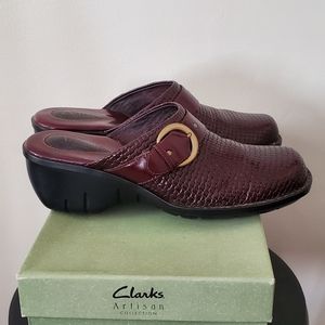 Size 8 1/2, Brand: Clark's, Type:Mules. Color: Brown. Gently worn, great condition