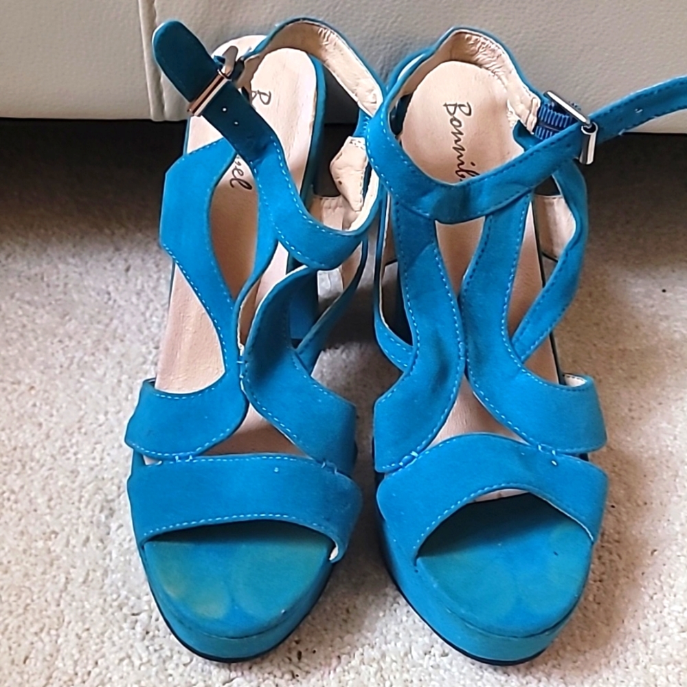 Teal Green Sandals with ankle straps.