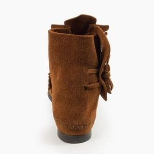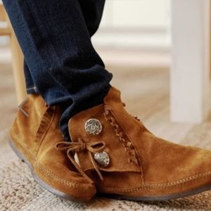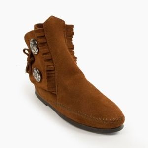Brand new Minnetonka Two Button Hardsole Brown Suade Boots