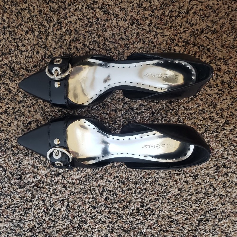 BCBGirls BG-Lillia black heels. 3" stiletto heel. Size 9.5M. Leather material with buckle. Slightly used, excellent condition. Comes in original box.