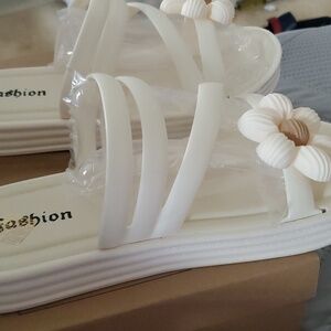 completely new, these sandals are cute and very comfortable to walk in, super soft, size 8 and they are white