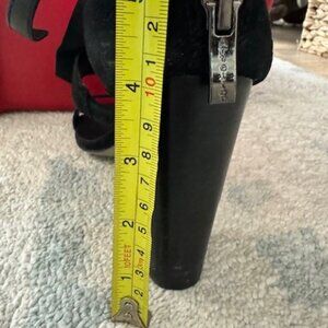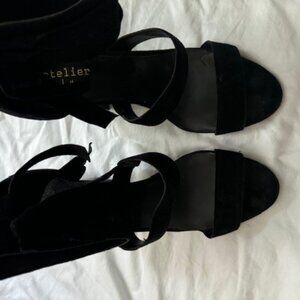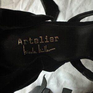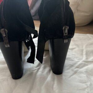 Nicole Miller Black Suede Shoes worn once. Very sexy fringe hangs off strap around ankle, zip in back. Mint Condition Size 8.5