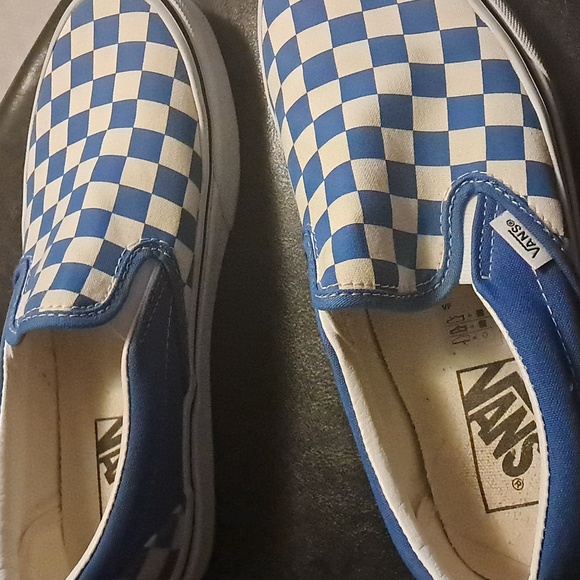 These shoes are very stylish. They are checker blue and white. Very cute.