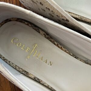 Flat snake skin slip on shoes. Slightly worn.