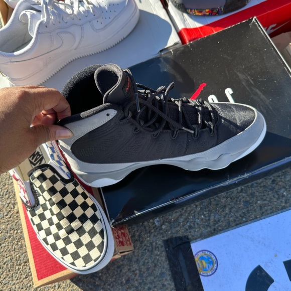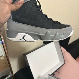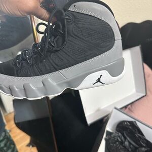 Jordan 9’s particle gray size 9 men. Has a crease but only worn once.
