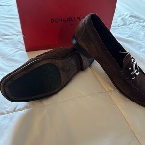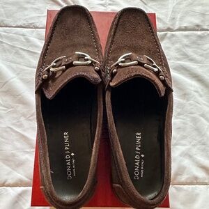 Make a statement with the Dacio loafer from Donald Pilner. Expertly crafted with a suede upper topped with a polished metal bit, this classic style features an ultra-comfortable memory foam padded insole for plush cushioning that will get you through the day. Finished with a durable leather outsole. Made in Italy.
