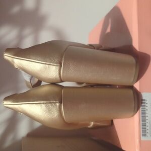 pale Gold block heels never worn brand new with original box. size 9.5w heel height approximately 4 in with 1 in platform