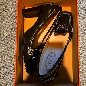TOD'S heels, brown size 38. Beautiful stitching and detail. creamy chocolate color. Patent leather.