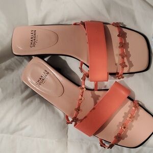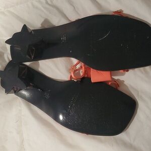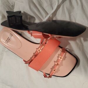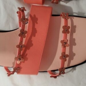 sandels with little flowers straps heel has a flower design heel