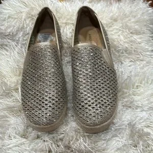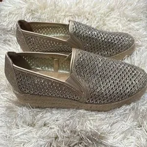 Slip on glitter woven heel