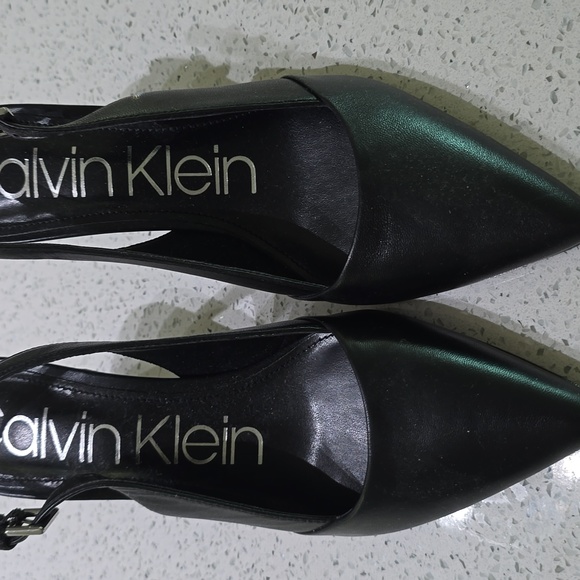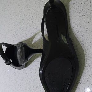 black color sling sandals Calvin Klein never worn 3 1/3 in heel size 7 very stylish and confy, I'm no longer wearing heels so would love someone to enjoy then