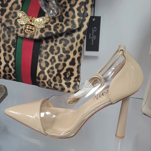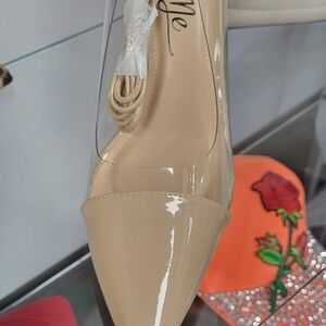Tan/Clear Patent Leather Lace up Pumps Tan in color