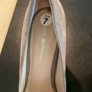 Taupe suede wedges, lovely neutral color . Heel height about 3”. Light wear.