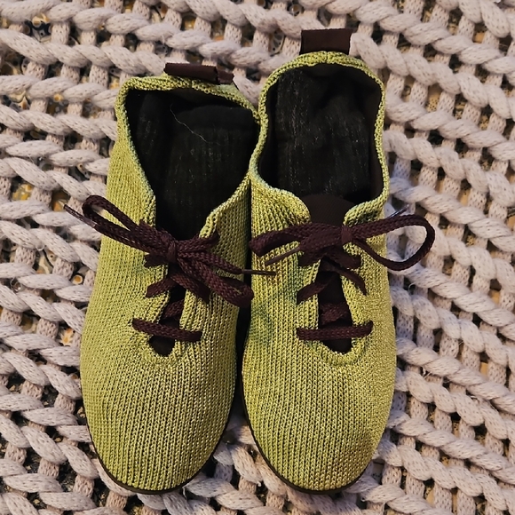 Archopedico knit, lace-up shoes. These are comfy, washable, lightweight knit shoes in a happy lime green. I wore a few times for casual evenings out. They are in great condition. European size 40. US size 9.