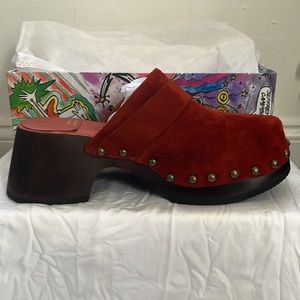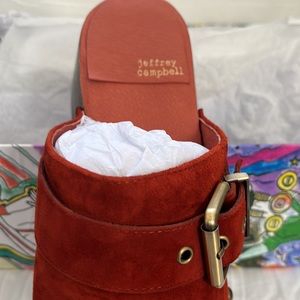 Jeffrey Campbell Ichlieb suede clogs NWT these clogs will turn heads great quality nice for fall and spring you will not be disappointed in this shoe. They are a real nice rust color