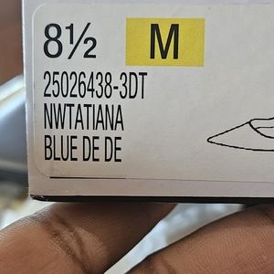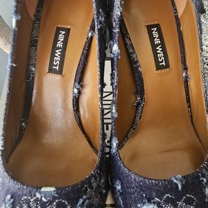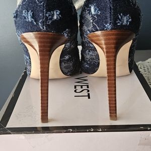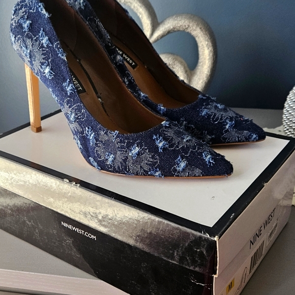 Nine West Tatiana Distressed Blue Denim Heel. Never Worn Nine West Tatiana blue distressed denim heel. Size 8.5M. approx 4 inch heel. Tried on but never worn, also has original box