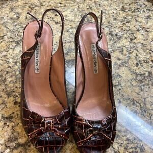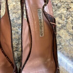 Shoes Heels Charles David brown croc pattern size 8 4” heel strap heel.