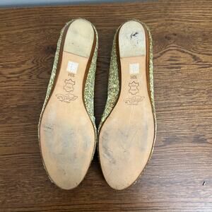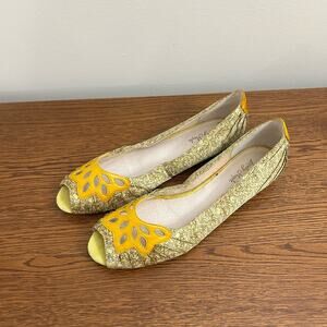 Shoes for Lovely People Yellow Floral Leather Canvas Peep Toe Flats Size 10
