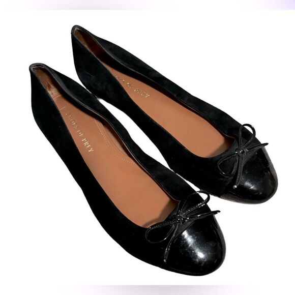Shoes of Prey Black Suede Leather Bow Ballet Flat- Size 8.5 W
