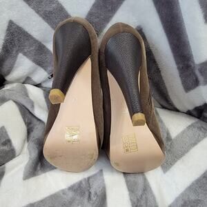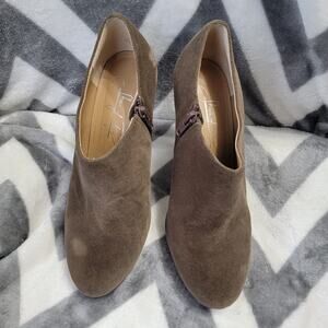 Size 37 (US size 6). Shoes of Prey was a top tier company, now out of business, that allowed customers to custom design their own shoes. These are high quality, custom designed UNIQUE suede velvet booties in a gorgeous olive green with a gold leather base. They zip up at the side. Great condition