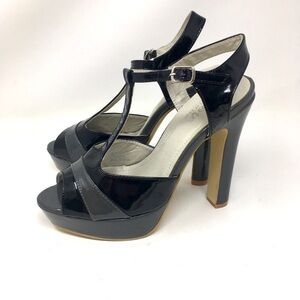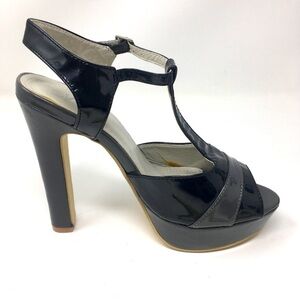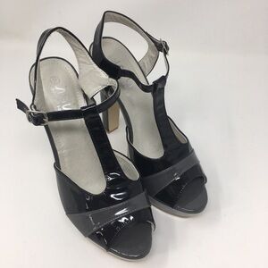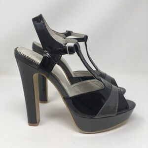 Shoes of Soul Pumps Patent Platform T-Strap Grey 9