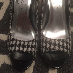Shoes peep toe high heels houndstooth checkered